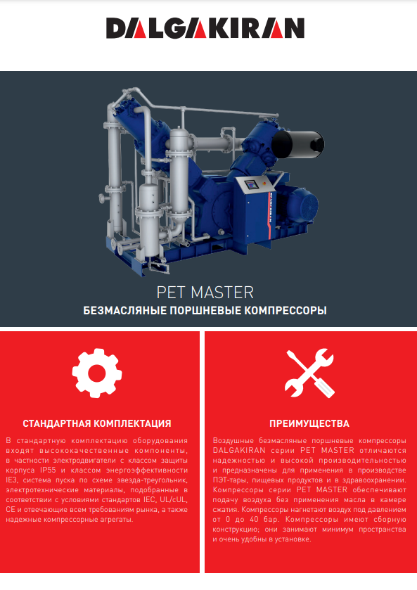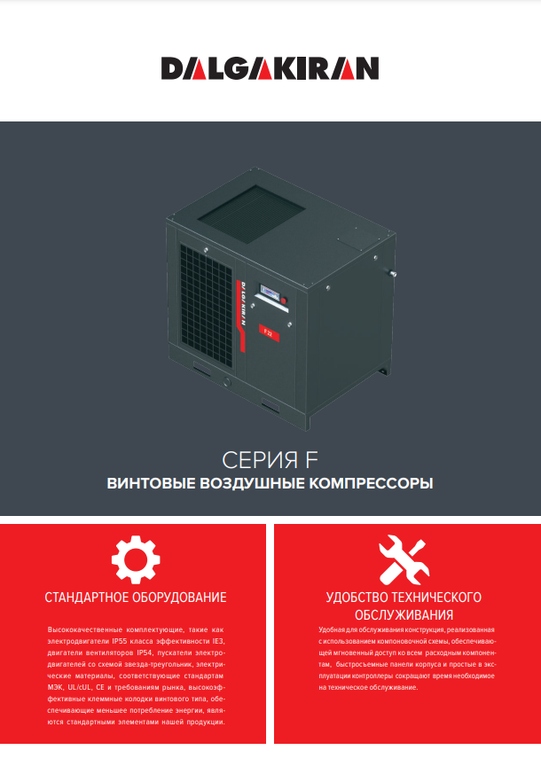Мировой промышленный холдинг DALGAKIRAN является одним из мировых лидеров по производству винтовых и поршневых воздушных компрессоров, а так же систем воздухоподготовки на международном рынке. Вся продукция прошла официальную сертификацию ISO 9001, Gost-R, TSE и Turk Loydu в соответствии с общепризнанными международными стандартами.